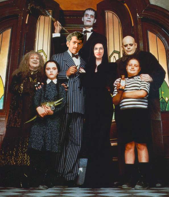 From Hatter, a family photo, with Bruce as Gomez Addams and his wife, Wendla, as Morticia...